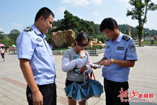 韶山新闻网7月30日讯(记者 李青 摄影) 目前,全市创建5A级旅游景区进入冲刺阶段。为了加强全市旅游市场监管,净化旅游市场秩序,市旅游、行政执法局积极部署,加强巡逻,采取多项措施加强旅游秩序的监管,并积极加强与其他相关单位的协调配合,确保市场秩序稳定。旅游执法人员正在检查导游的导游证、派团单等。