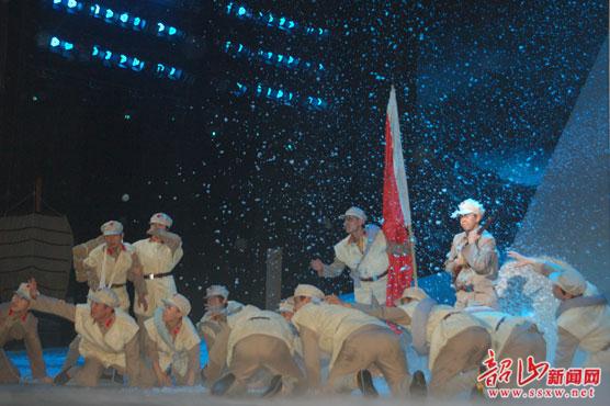 《日出韶山》是湖南献给建党90周年的红色经典文化工程。该剧以毛泽东为主线,以韶山为背景,选取毛泽东一生中最闪亮的节点和中国革命曲折壮阔的历史。整台节目全长80分钟,由近200人的大型艺术团体组成,其中大部分来自奥运会开幕式的专业演艺团队。