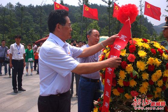韶山新闻网讯(记者 刘仁军) 5月27日,水利部水保司司长刘震一行来韶视察。刘震一行来到毛泽东广场向主席铜像敬献花篮,并重温了入党誓词,参观了毛泽东故居、毛泽东遗物馆等景点。随后还现场视察了韶河治理一期工程等项目。湘潭市副市长刘建业,我市领导向敏、成小林等陪同视察。