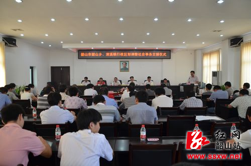 韶山新闻网讯(沈江 何舒妍)7月20日,韶山市韶山乡、清溪镇行政区划调整社会事务交接仪式在清溪镇镇政府举行。韶山市领导向敏、何锋、李文亮、蒋卫阳、刘科、钟立新出席仪式。