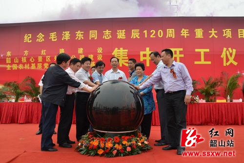 仪式由韶山市委副书记、市长向敏主持,省委组织部副巡视员由红军,省核工业地质局党组书记、局长陈书山,省韶山管理局纪委书记李龙,湘潭市委常委、常务副市长周放良,湘潭市委常委、组织部部长、统战部部长彭雁峰,湘潭市人大副主任万启林,湘潭市政协副主席刘建湘,韶山市委书记杨真平、市人大常委会主任廖雪林、市政协主席喻海中等出席开工仪式。