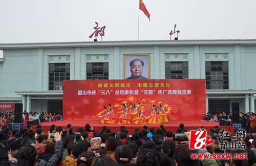3月5日,韶山市妇联、总工会、团市委、文体广新局、计生局等单位在火车站广场联合举行了以“创建文明城市,巾帼志愿先行”为主题的庆“三八”总结表彰暨“天鹅”杯广场舞展示赛。一批“先进妇女组织”、“先进妇女工作者”、“优美村庄”、“优美社区”、“洁美家庭”、“巾帼文明岗”、“巾帼建功先进个人”、“五好文明家庭”、“平安家庭”、“双学双比女能手”等先进集体和先进个人受到表彰,而由机关工委等12个单位带来的广场舞精彩纷呈,充分展现了韶山妇女的良好精神风貌。