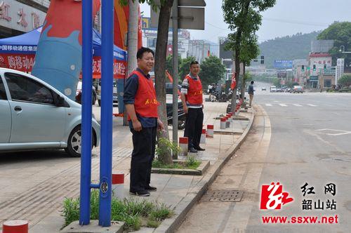 “请等下再通行,注意安全,现在还是红灯!”在韶山高新区办公楼门口的红绿灯处,一名身穿红马甲的文明交通劝导员及时制止了几个急于过马路的市民。在韶山中路、韶山北路、迎宾路等路段,一片热火朝天的劳动场面,有很多身穿红马甲的文明劝导员拿着扫把、钳子在进行路面垃圾清扫。“那个地方还有垃圾,把它扫过来......”