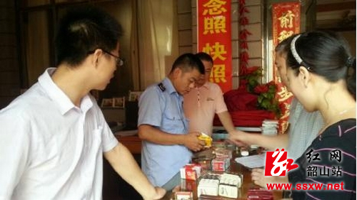 韶山新闻网讯(文丽 邓敏) 7月7日下午,韶山市工商局党组书记、局长彭继山带队,联合韶山市烟草专卖局相关执法人员,组成数十人的执法小组,赶赴天骄大酒店,查处该酒店门店无照经营销售假烟一案。