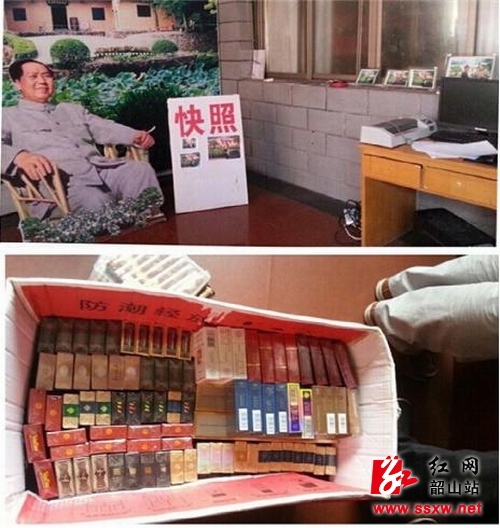 执法人员赶到现场时,店主早已逃之夭夭。经查,该门店违法行为严重,不但无照经营,还利用毛主席蜡像照相盈利,更违法销售各类假烟,严重坑害消费者权益。执法人员在现场查获电脑、打印机、过塑机各一台,芙蓉王、“为人民服务”、中华等各类假烟520包(盒),涉案金额1.78万元。