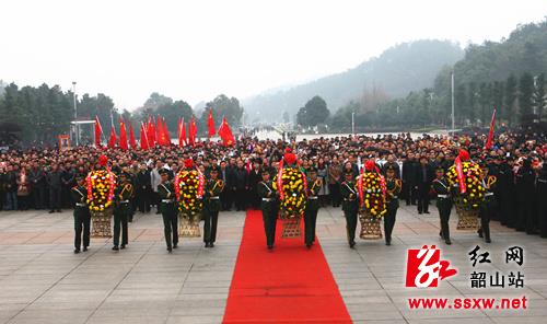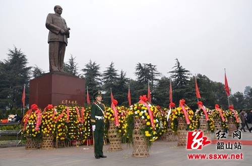 韶峰巍巍,松柏青翠。上午8时,中共韶山市委、韶山市人大常委会、韶山市人民政府、政协韶山市委员会、韶山市人武部领导以及来自海内外的游客、韶山学校的师生和韶山的干部群众代表,缓缓从瞻仰大道走来,在毛主席铜像前整齐列队。伴随着献花音乐,礼兵迈着坚定有力的正步,护送花篮走到毛主席铜像前,轻轻放下。在司仪的引导下,现场所有人缓缓向毛主席铜像三鞠躬,寄托他们对毛主席的无限敬仰和无尽思念。