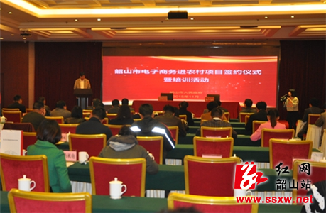 韶山新闻网讯(余拙) 11月4日,我市举行电子商务进农村项目签约仪式暨培训活动,6家企业与市人民政府现场签订项目合作协议,全面推进韶山电子商务进农村工作开展。市领导李文亮、蒋卫阳、刘科,各乡镇乡镇长,相关单位及企业负责人出席仪式。