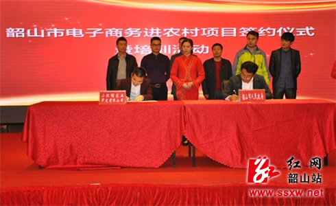 仪式上,中国邮政集团公司湖南省湘潭市分公司、湖南信网天下传媒有限公司、长沙网创电子商务股份有限公司等6家企业与市人民政府签订项目合作协议,全面推进韶山电子商务进农村工作开展。