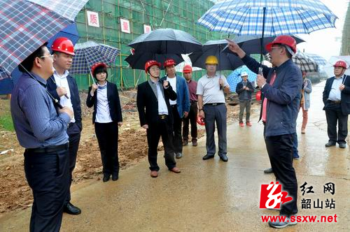 韶山新闻网讯(记者 文丽) 4月25日下午,市委书记向敏深入肖家冲安置区、沪昆高铁站前路、职业中专教学综合楼等项目工地,冒雨调研重点项目建设情况。市委常委、市委办主任彭湘,副市长肖泽辉等参加调研。