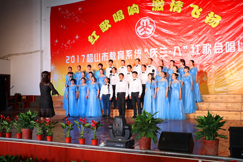 韶山新闻网讯(记者 李兵)3月3日,以“红歌唱响,激情飞扬”为主题的庆“三八”暨红歌合唱比赛在韶山学校举行。