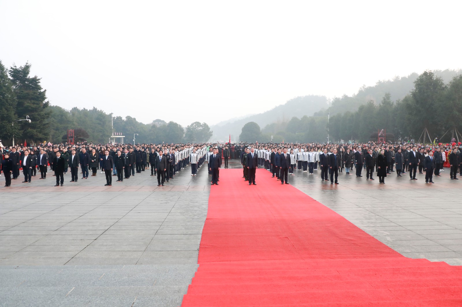 上午8点,毛泽东广场暖阳初照,韶山市领导及当地群众代表、广大游客在毛泽东同志铜像前静穆肃立。市委书记唐杰代表全市干部群众上前仔细整理花篮缎带。